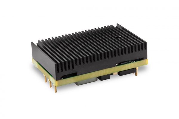 The converter is supplied in an industry standard low-profile quarter-brick format, measuring 58.4 x 36.8 x 14 mm (2.30 x 1.45 x 0.55 in) with baseplate, and is also available with an integrated heatsink with a height profile of 19 mm. The converter has an operational temperature range of -40°C to +125°C.