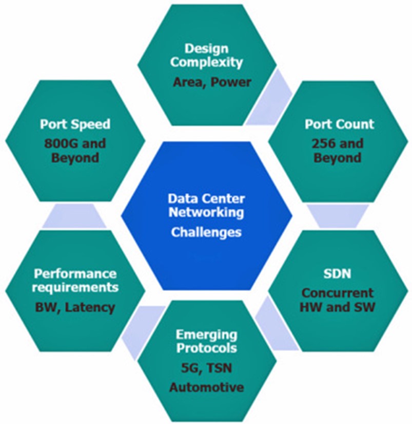 Data center networking enjoyed explosive growth sustained by new applications, such as software-defined networking (SDN). Emerging protocols that include 5G, time-sensitive networking (TSN), and automotive internet played a role as well. All contribute to an expanded port count, now exceeding 256, increased port speeds approaching 800Gb/sec, enlarged bandwidth, and lowered latencies. The consequence is exploding design sizes into multi-billion equivalent gates, and daunting pre-silicon design verification due to shrinking time allocation to ensure that performance and power budgets are met.