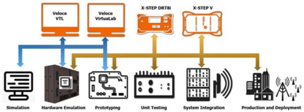Figure #2: A 5G end-to-end, pre- and post-silicon development and verification flow encompasses simulation, emulation, prototyping, unit testing, system integration, and post-silicon testing. (Image source: Siemens EDA)