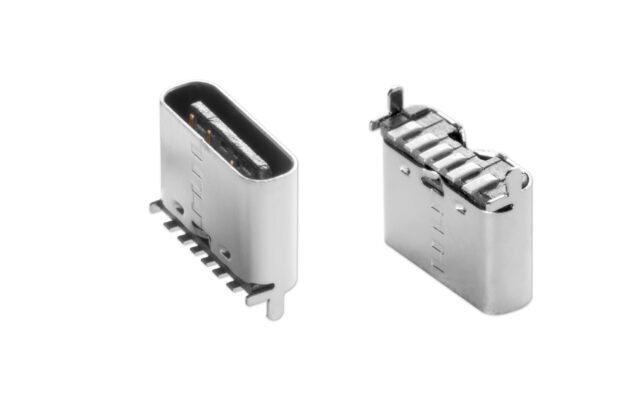Housed in a vertical, surface mount package, the UJC-VP-3-SMT-TR is a 6-pin USB Type C receptacle that can deliver up to 60 W of power with a 3 A current rating and 20 Vdc voltage rating. This vertical mount power-only USB Type C model is compatible with any standard USB Type C plug, taking the accessibility and simplified design integration of the universal and widely adopted Type C connection and applying it to power-only applications. The UJC‑VP-3-SMT-TR further offers high reliability up to 10,000 mating cycles, reflow solder compatibility, and an operating temperature range from -25 to 85°C.