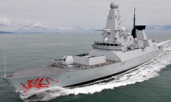 HMS Dragon, an air-defense destroyer with high-mounted SAMPSON radar