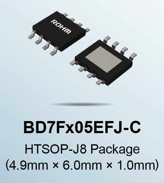 In addition to reducing the number of components and person-hours required for noise countermeasures, the BD7Fx05EFJ-C improves application reliability by incorporating multiple protection circuits along with a function that stabilizes the output voltage.