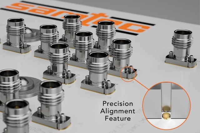 “In extremely high frequency test and measurement applications, compression mount connectors have become the connector of choice. Samtec has noticed that when compression mounting, slight misalignment between the connector and the landing pad can occur causing signal degradation. While at lower-frequencies this degradation is minor, at high-frequencies it can become problematic yet very difficult to detect. This has been observed even when mounting screws are tightened to proper torque specifications.” says Dan Birch Global RF Engineering Manager at Samtec. “To prevent this issue, alignment features are now standard with all Samtec vertical compression mount RF products.”