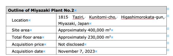ROHM has completed the acquisition of the assets of Solar Frontier’s former Kunitomi Plant located in Japan, on November 7, 2023 – based on its agreement signed with Solar Frontier.