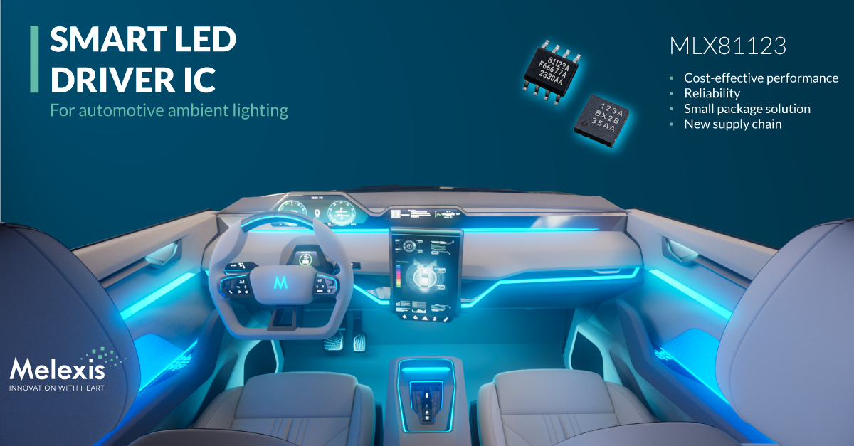 Melexis, an influential player in automotive LED drivers for ambient lighting, announces the extension of its LIN RGB family with the MLX81123. Built on the success of its predecessor, it delivers cost-effective performance and reliability in a small package. By leveraging a new supply chain, Melexis boosts competitiveness and ensures business continuity for its customers.Ambient LED lighting is now a key design feature for automotive manufacturers, enhancing the end-user’s experience and helping OEMs to provide striking visual distinction. With well known OEMs utilizing ambient lighting extensively across their latest models, maintaining a reliable supply chain is paramount.