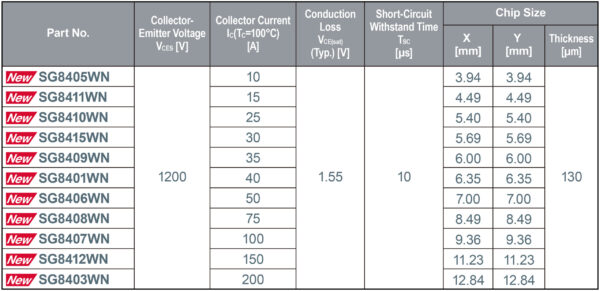 ROHM has developed automotive-grade AEC-Q101 qualified 4th Generation 1200V IGBTs that combine class-leading* low loss characteristics with high short-circuit resistance. This makes the devices ideal for vehicle electric compressors and HV heaters as well as industrial inverters. The current lineup includes four models – RGA80TRX2HR / RGA80TRX2EHR / RGA80TSX2HR / RGA80TSX2EHR – in two discrete package types (TO-247-4L and TO-247N), along with 11 bare chip variants – SG84xxWN – with plans to further expand the lineup in the future.