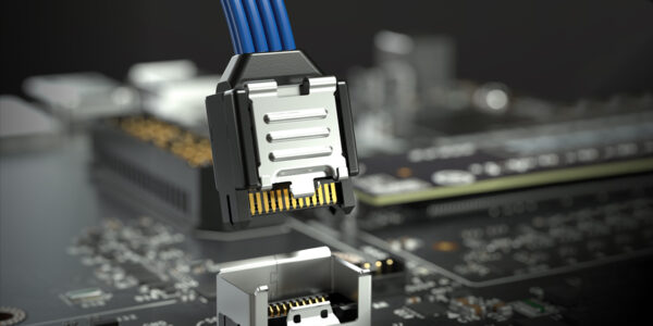 AcceleRate Slim Cable Assemblies are available in 8, 16, and 24 differential pair options. The 16 differential pair option supports PCIe® x4 plus sidebands, and the 24 differential pair option supports PCIe® x8 plus sidebands. A “Reversed Polarity” pinout option reduces far-end crosstalk (FEXT).