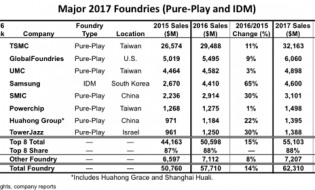 Research included in the recently released 50-page April Update to the 2018 edition of IC Insights’ McClean Reportshows that in 2017, the top eight major foundry leaders (i.e., sales of ≥$1.0 billion) held... Read More