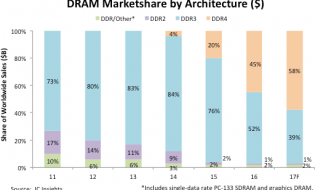 DDR4 and DDR3 forecast to represent 97% of sizzling 2017 DRAM market The new, higher-speed DDR4 DRAM generation gained significant marketshare in 2016, representing 45% of total DRAM sales. Previously,... Read More