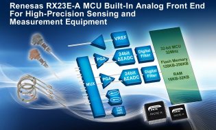 Renesas Electronics Corporation (TSE: 6723), a premier supplier of advanced semiconductor solutions, today introduced the RX23E-A Group 32-bit RX microcontrollers (MCUs), combining high-precision analog front end (AFE) and an MCU... Read More