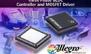 Allegro MicroSystems, LLC announces a new three-phase brushless BLDC motor controller for use with N-channel external power MOSFETs. Allegro’s AMT49413 incorporates much of the circuitry required to design a cost-effective, three-phase motor... Read More