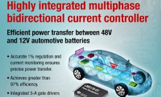 Texas Instruments (TI) (NASDAQ: TXN) today introduced the industry’s first fully integrated multiphase bidirectional DC/DC current controller, which efficiently transfers electric power greater than 500 W per phase between dual... Read More