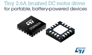 The STSPIN250 single-chip 2.6A driver for brushed DC motors extends STMicroelectronics’ family of miniature, low-voltage, energy-efficient drivers for battery-powered portable and wearable applications The driver integrates a full power-MOSFET bridge... Read More