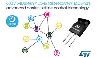 STMicroelectronics’ MDmesh™ DM6 600V MOSFETs contain a fast-recovery body diode to bring the performance advantages of the Company’s latest super-junction technology to full- and half-bridge topologies, Zero-Voltage Switching (ZVS) phase-shift... Read More