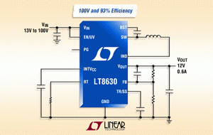 November 21, 2016Comments Off on 100V, 600mA, Synchronous Step-Down Delivers Over 93% Efficiency