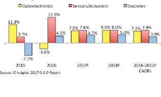 www.icinsights.comApril 6, 2017Comments Off on Optoelectronics, Sensors/Actuators, and Discretes Move Toward Normal Growth Rates