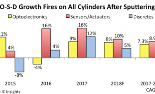 Total revenues in the three O-S-D market segments climbed 11% in 2017—the strongest growth rate since 2010—and continue to be driven by high demand for sensors, actuators, CMOS imaging devices,... Read More